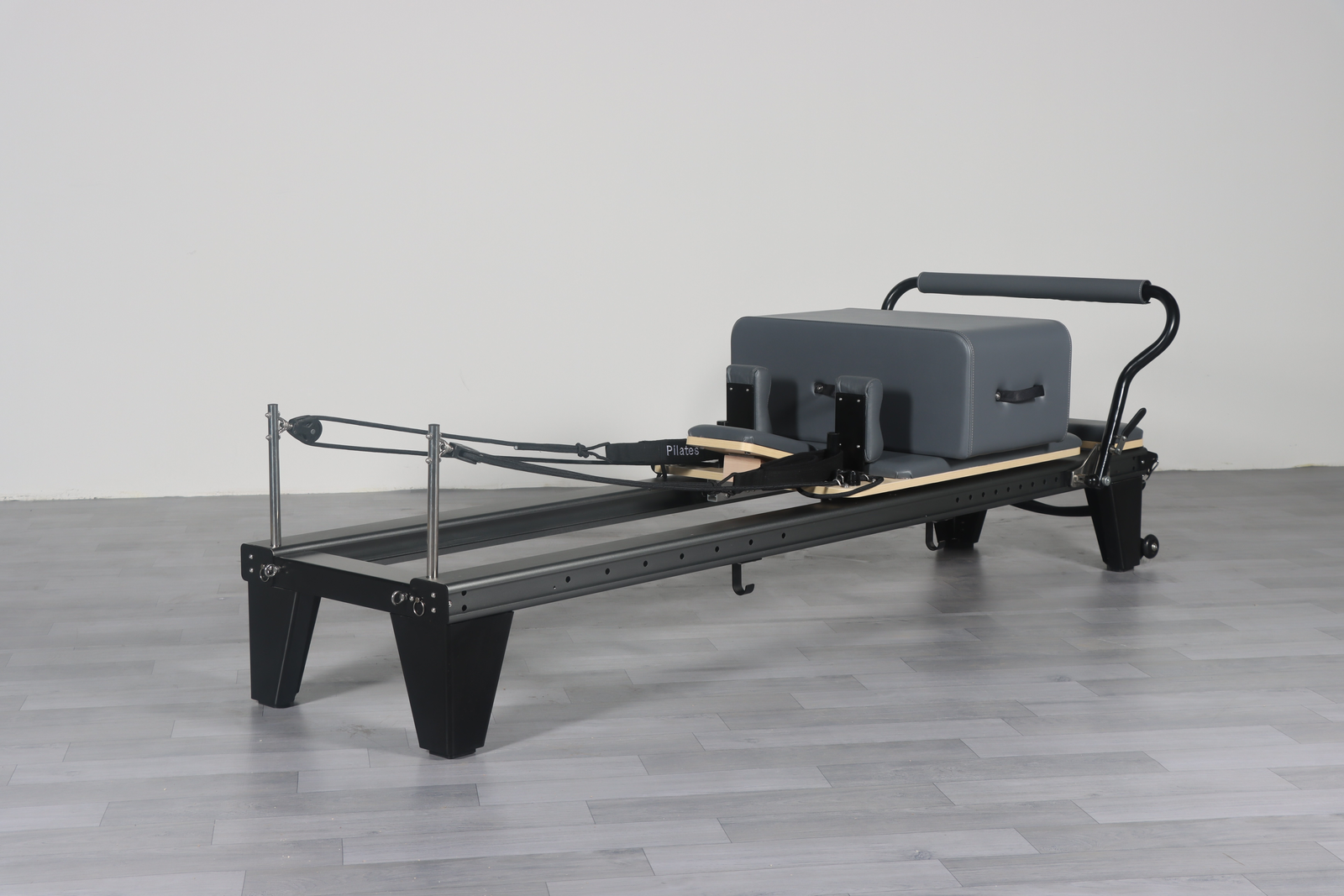 An aluminum Pilates reformer is a Pilates machine built with an aluminum frame instead of wood. It provides strong durability, lighter weight, and easier maintenance, making it ideal for commercial Pilates studios.