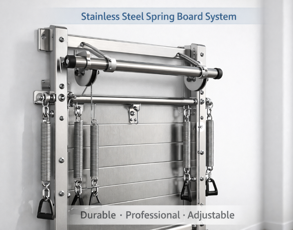 Built with a stainless steel spring board, this wall-mounted Pilates equipment delivers smooth, controlled resistance for strength, mobility, posture, and rehabilitation training.